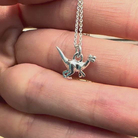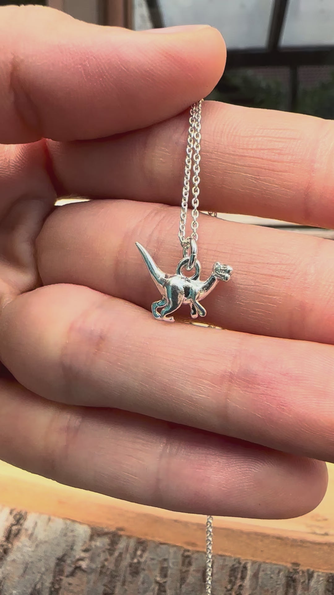 Cooler Halsschmuck mit silbernem Dino-Anhänger (925 Sterling/Echtsilber) und feiner Gliederkette (0/35/38/40/42/45/50 cm Länge, 925 Sterling) mit Federring-Verschluss.
