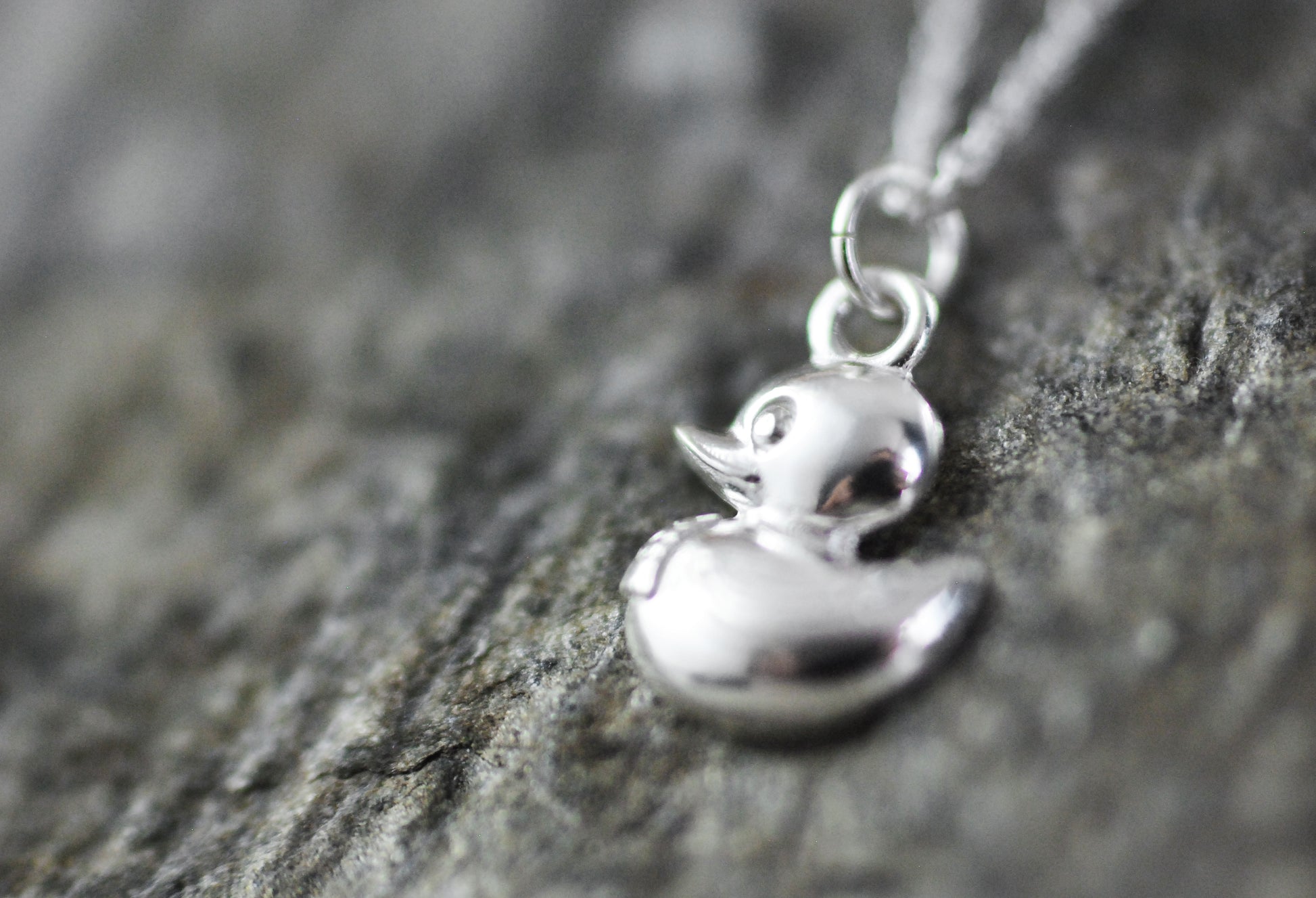 Filigraner Halsschmuck mit silbernem Enten-Anhänger (925 Sterling/Echtsilber) an feinem Gliederkettchen (0/35/38/40/42/45/50/60 cm Länge wählbar, 925 Sterling) mit Federring-Verschluss.