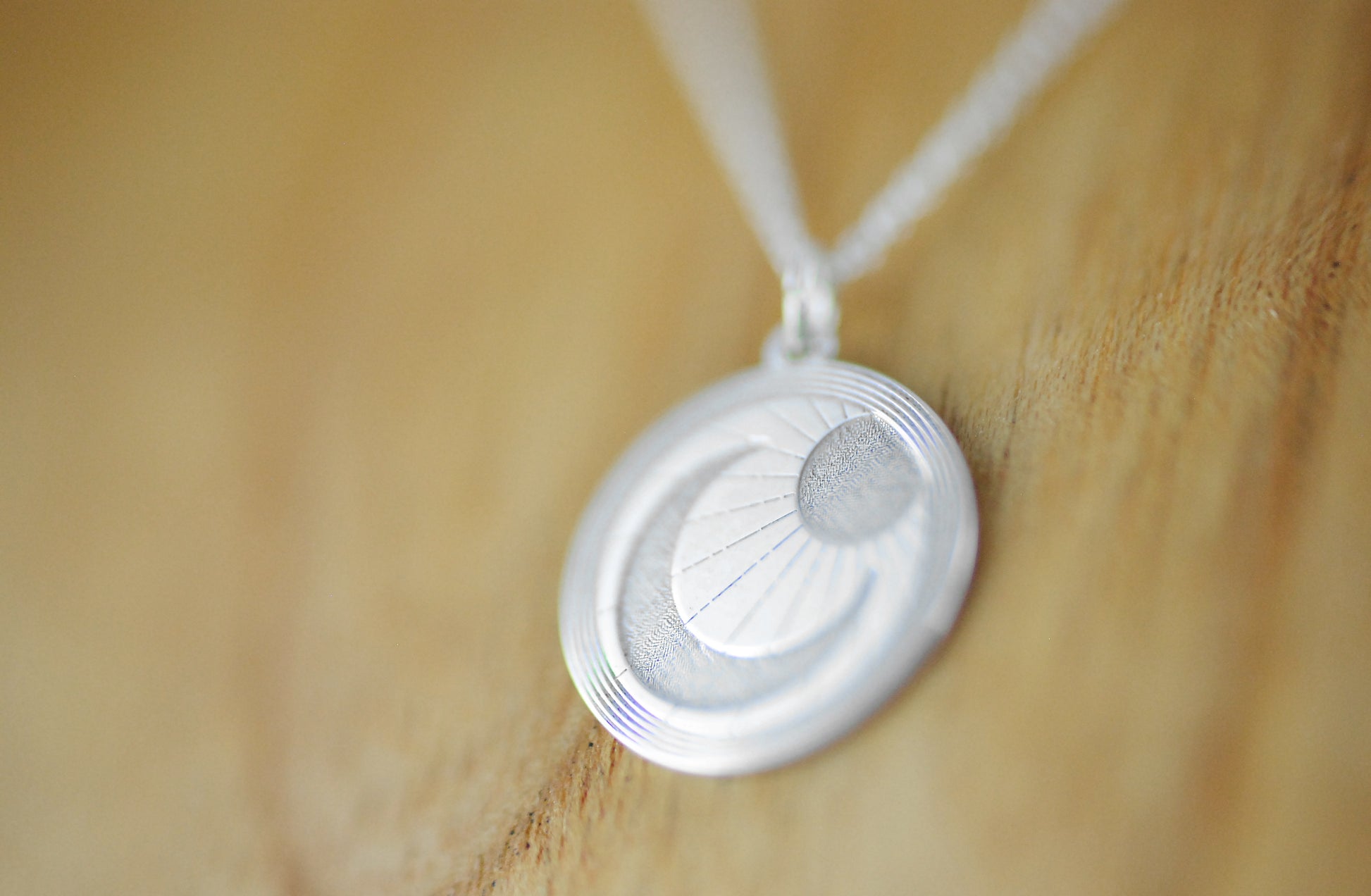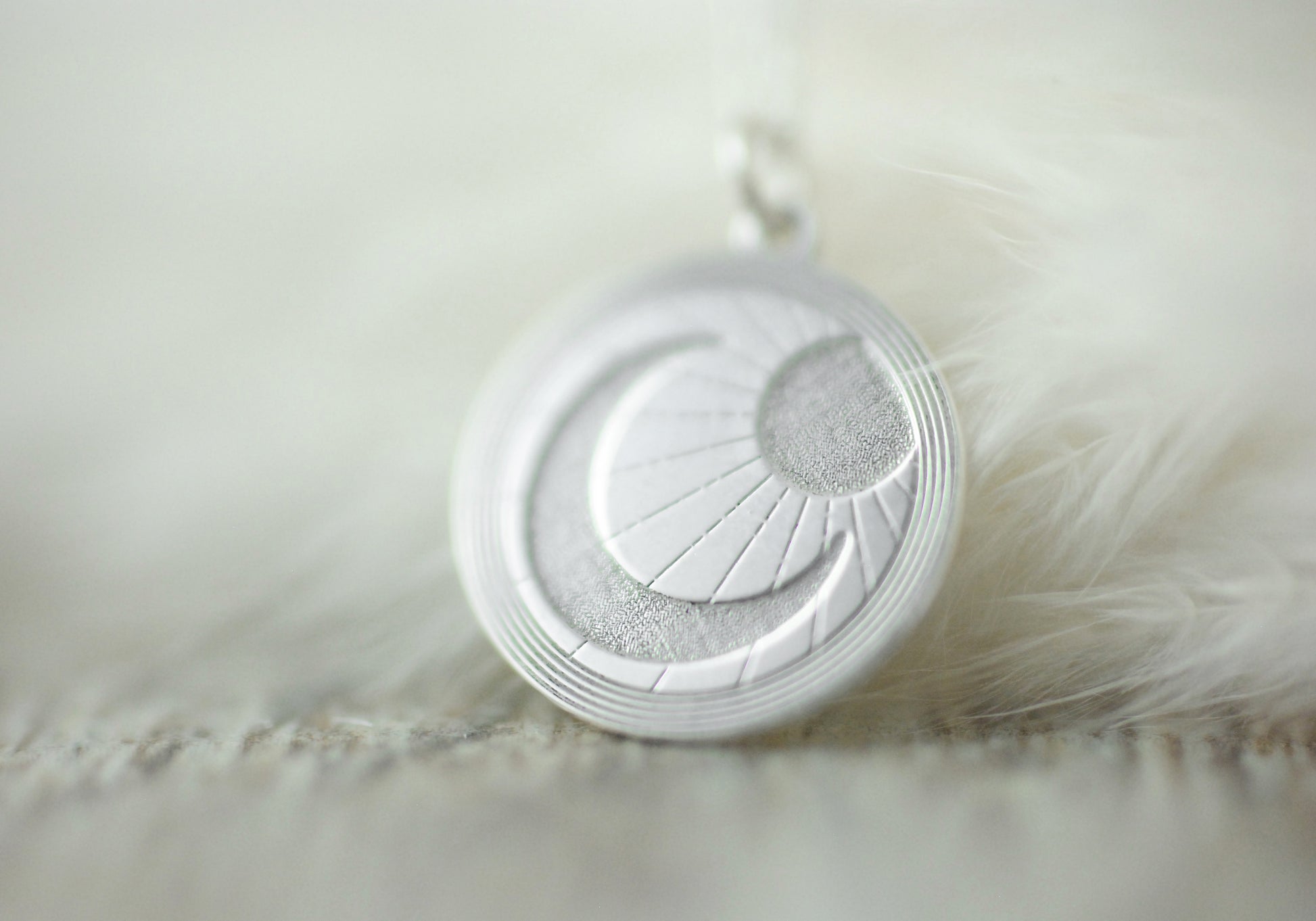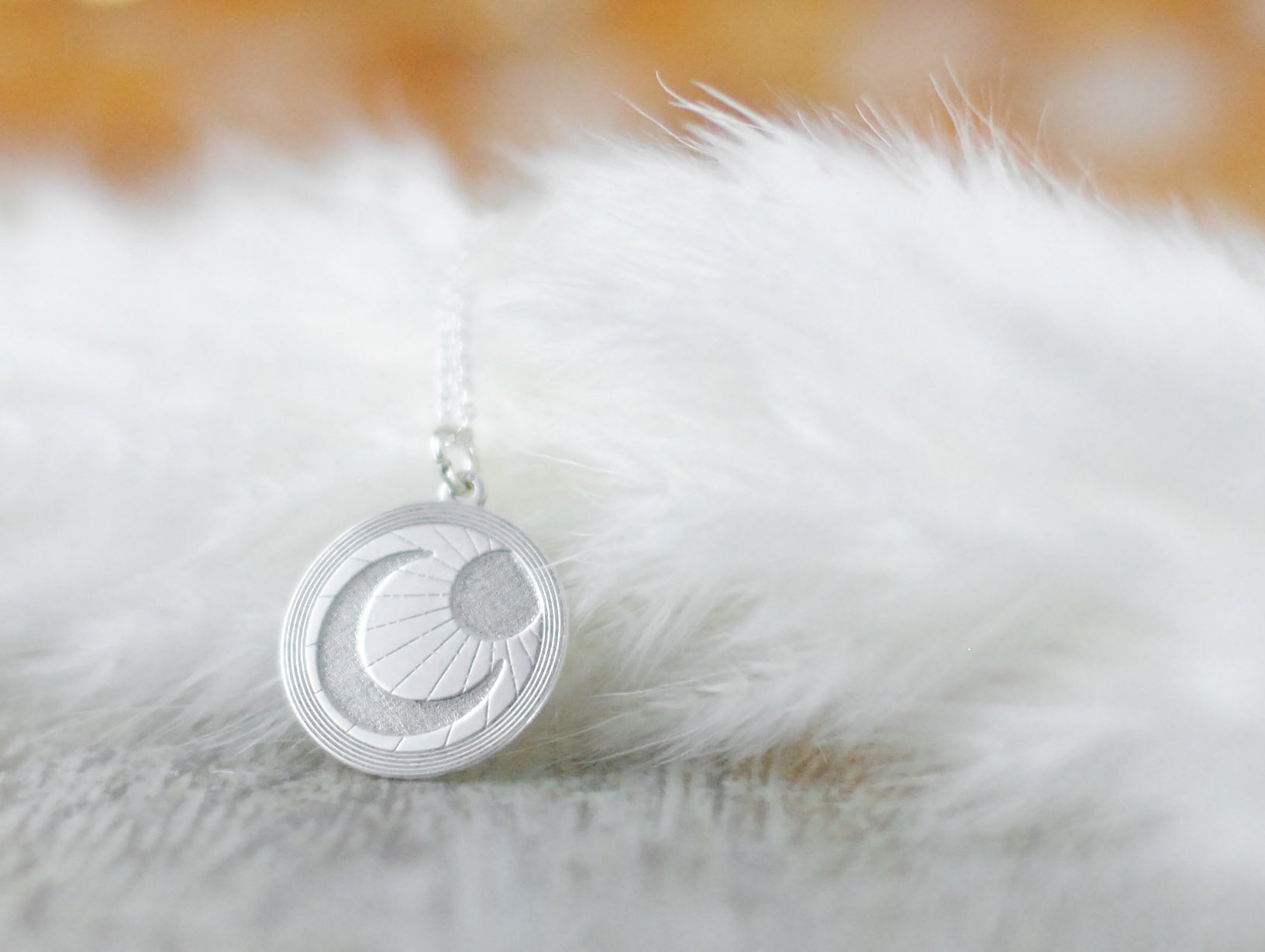 Außergewöhnliche, filigrane Kette mit silbernem Mond & Sonne-Anhänger (925 Sterling/Echtsilber) , an feiner Gliederkette (0/35/38/40/42/45/50/60 cm Länge wählbar, 925 Sterling) mit Federring-Verschluss.