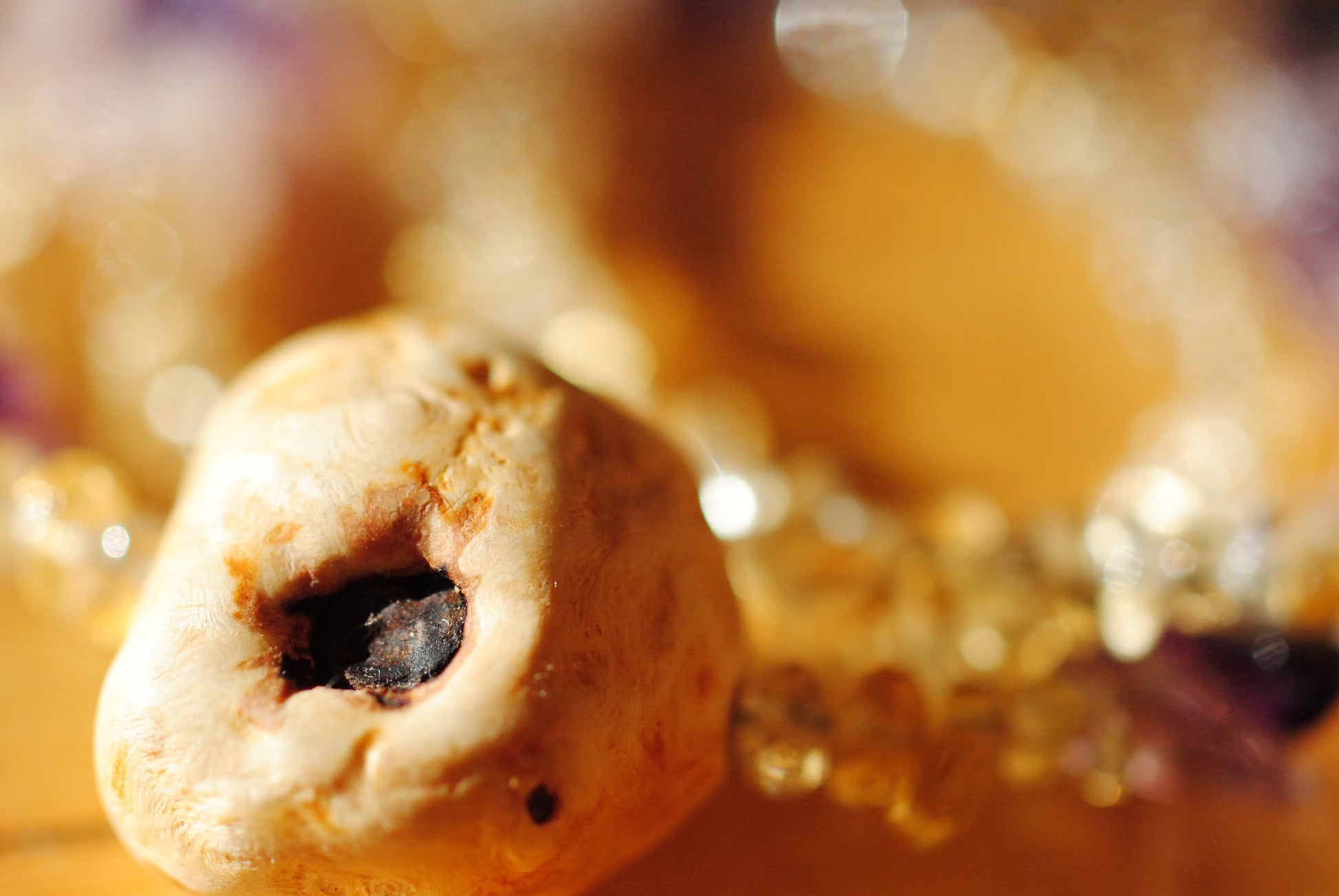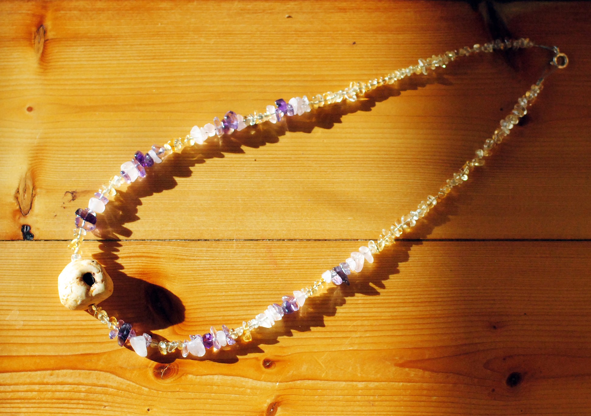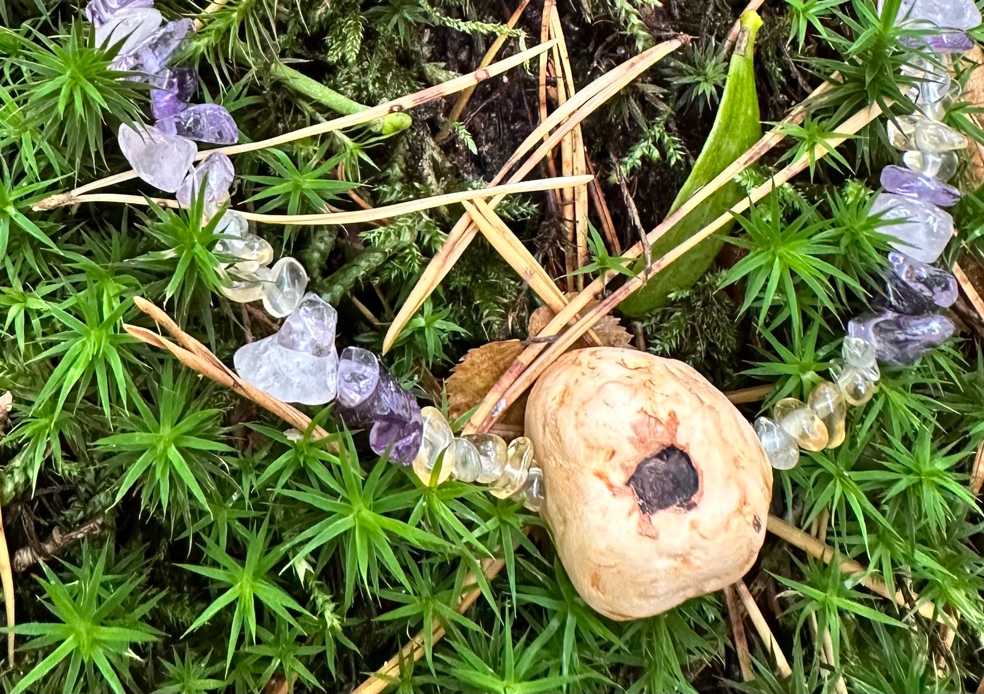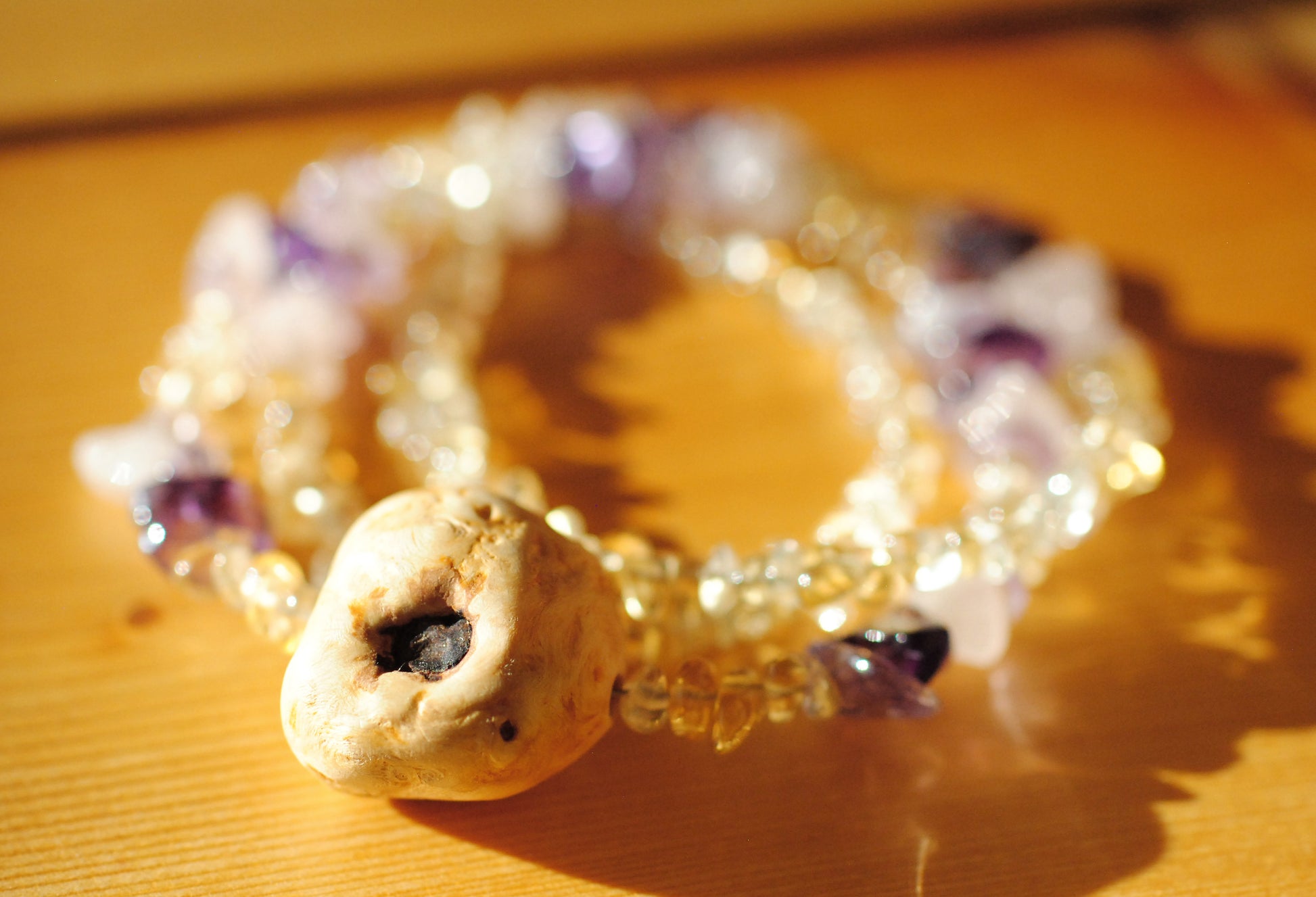 Einzelstück mit Baumperle und Edelsteinen, in liebevoller Kooperation entstanden von Felix von BaumperlenJuwel, Ramona von (R)Amiko Schamanische Medizinbeutel und mir, Anne von DonnaAnnaSchmuck.