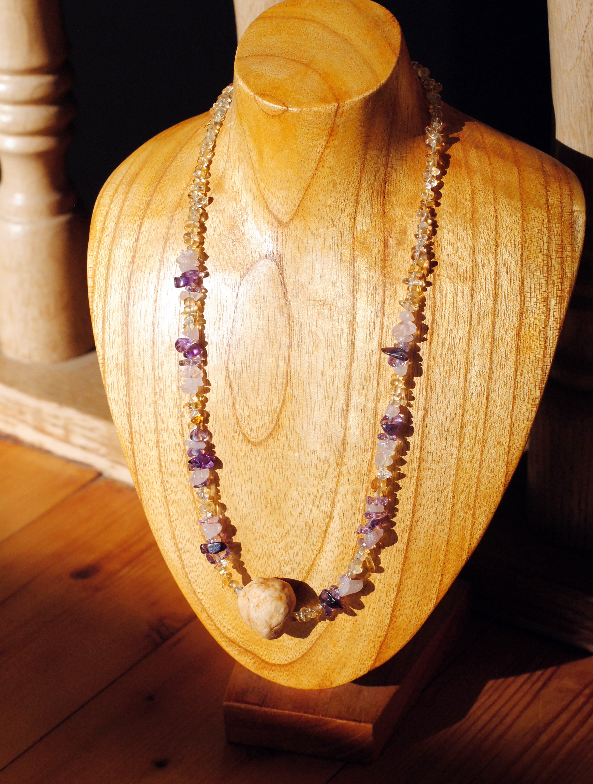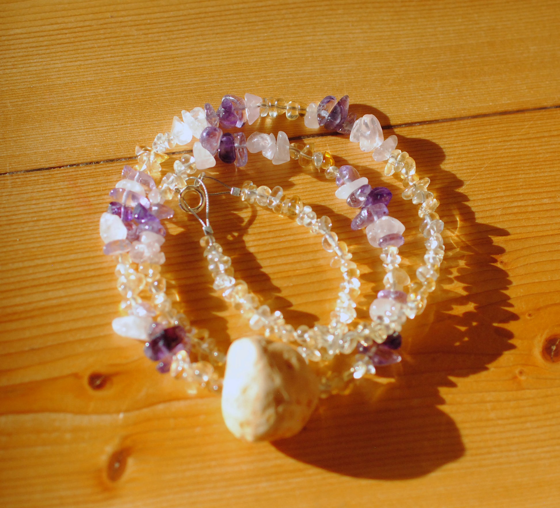 Citrin, Amethyst, Ametrin, Rosenquarz, Federringverschluss Silber, Juwelierdraht