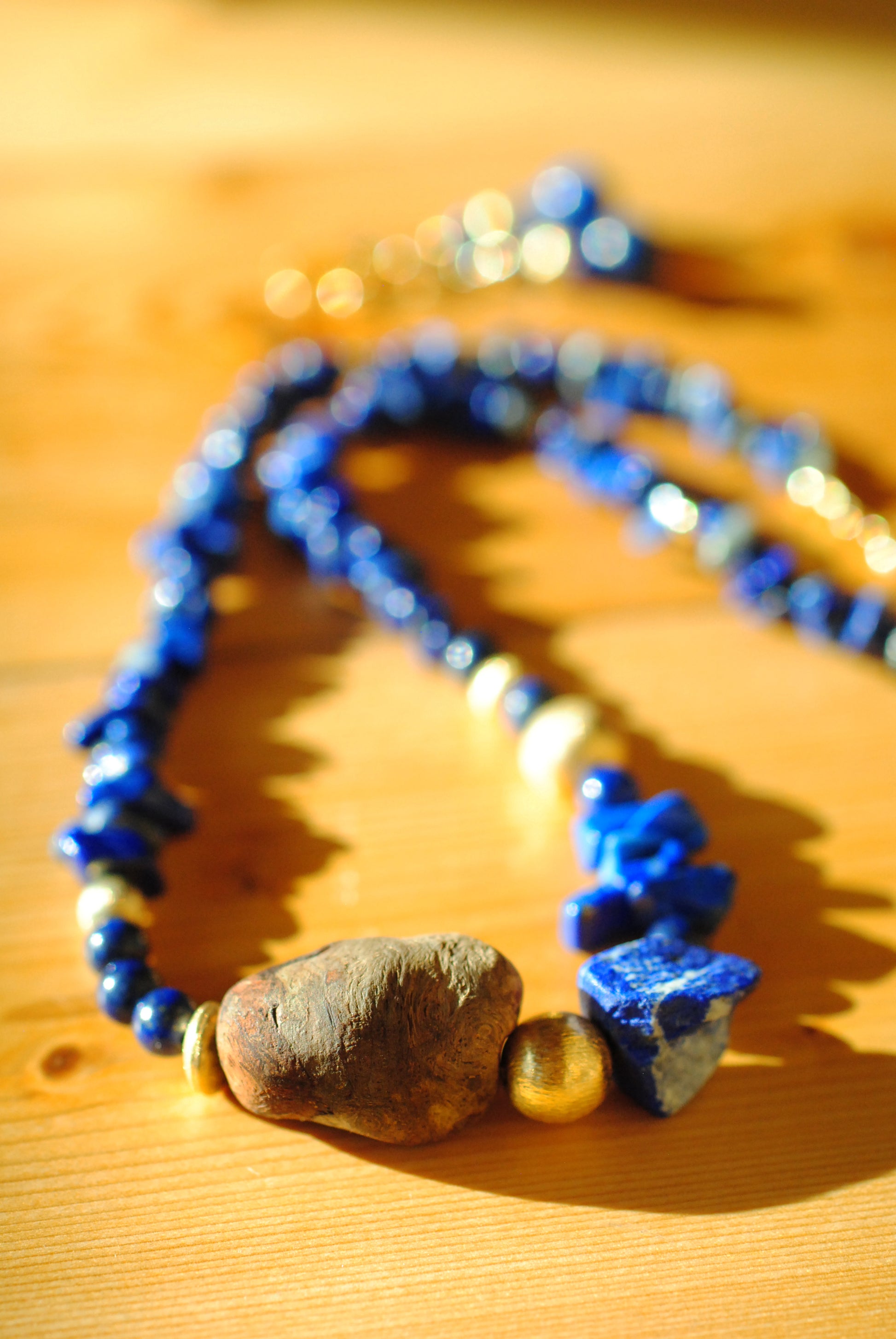 Fülle ✧ Baumperlen-Kette ✧ Lapislazuli & Gold ✧ Unikat