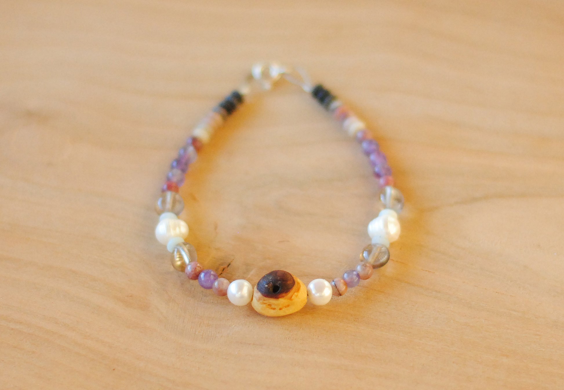 Eine ganz besondere Baumperle der Rotbuche ziert dieses Armband, das Trost spenden darf und Unterstützung im Trauerprozess.