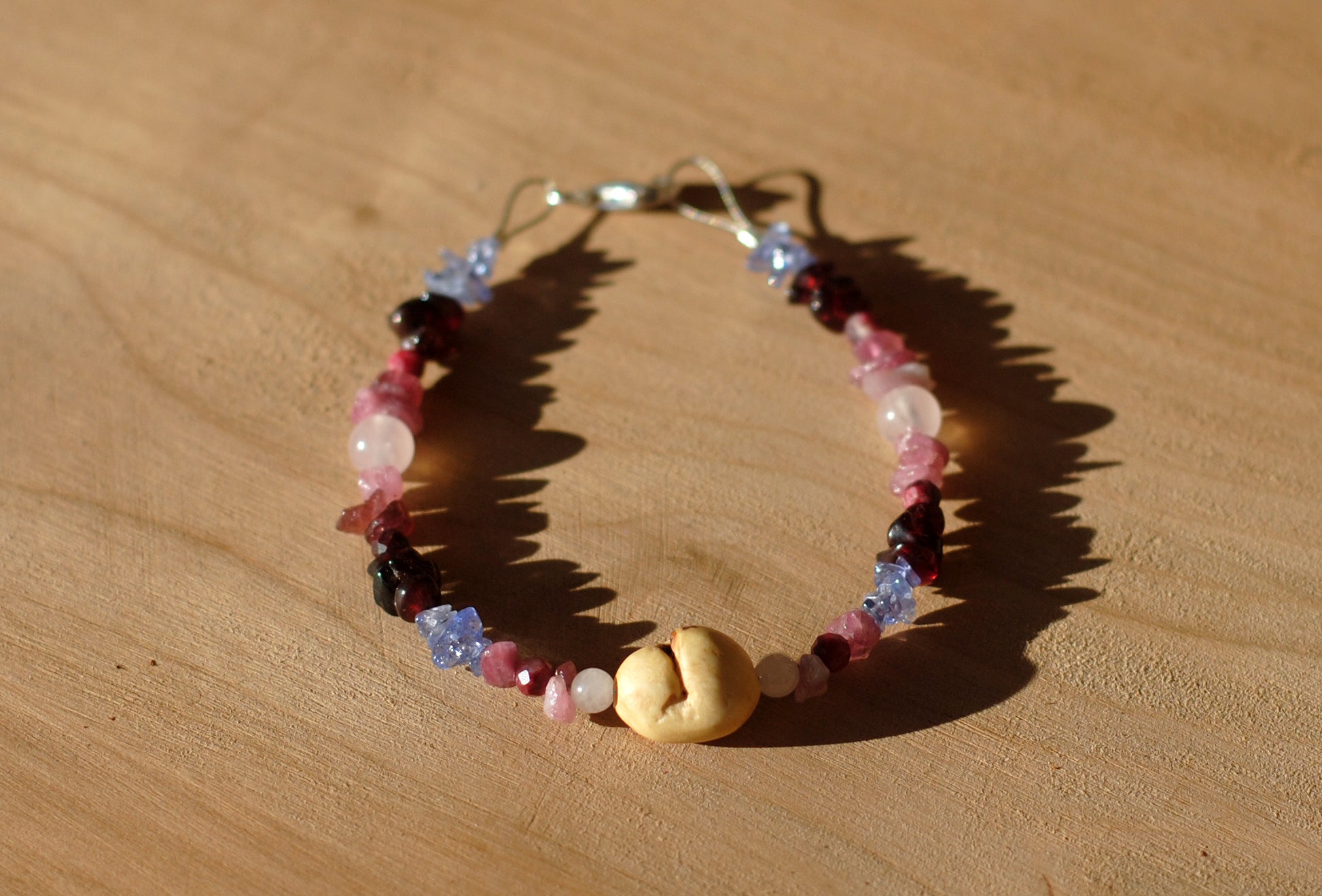 Schmuckset mit Baumperlen-Armband und Ring, Einzelstücke mit Baumperle und Edelsteinen, in liebevoller Kooperation entstanden von Felix von BaumperlenJuwel, Ramona von (R)Amiko Schamanische Medizinbeutel und mir, Anne von DonnaAnnaSchmuck.