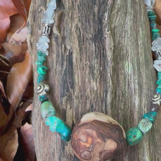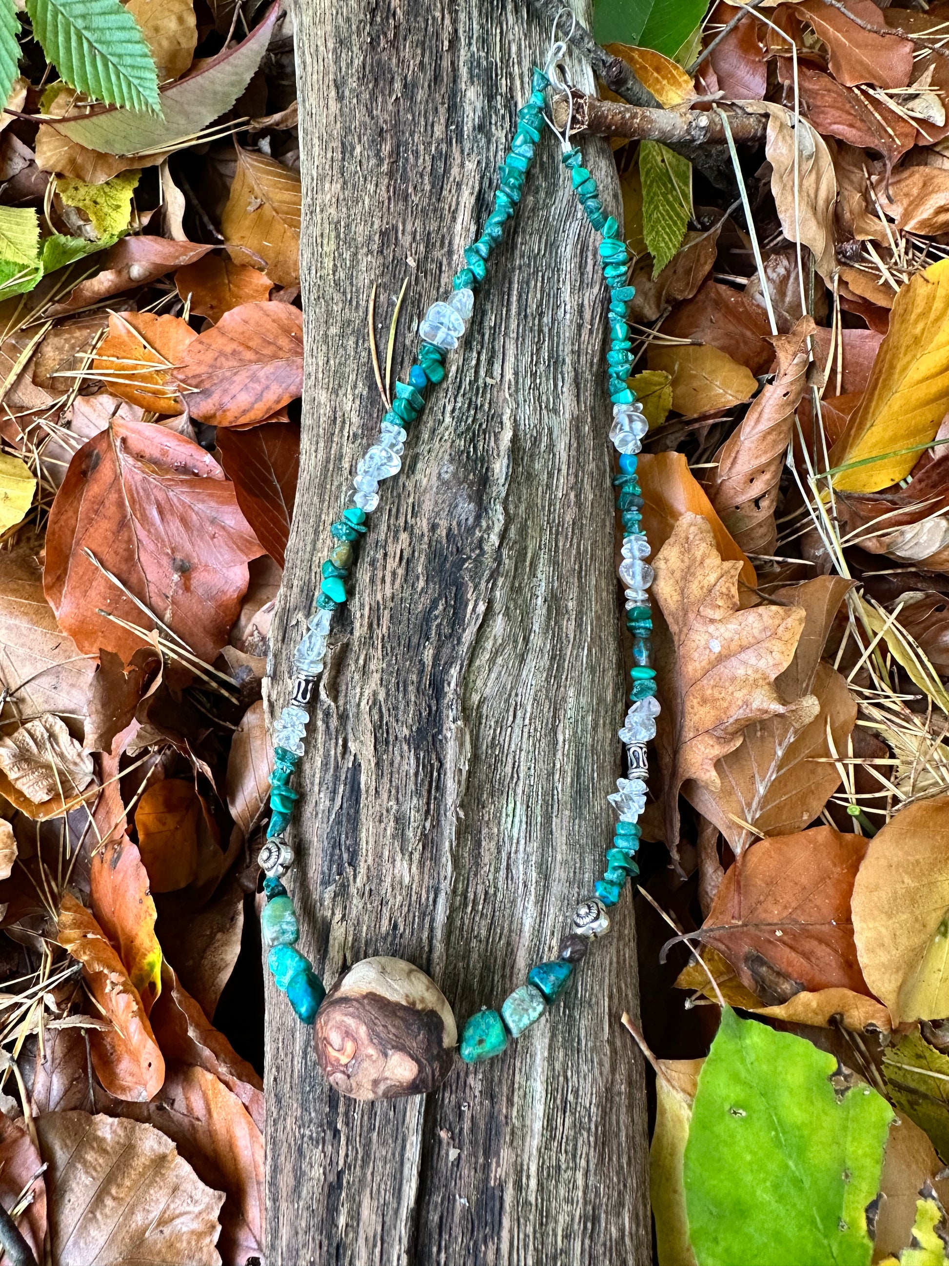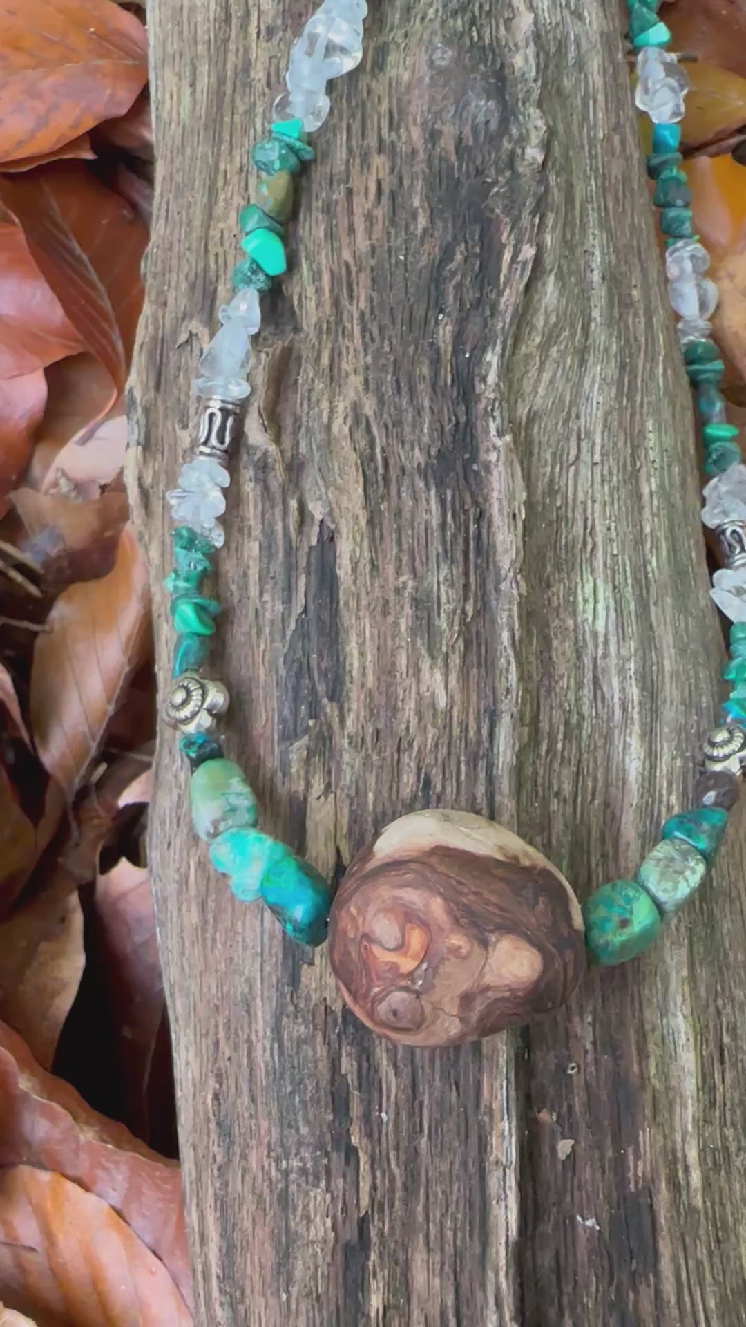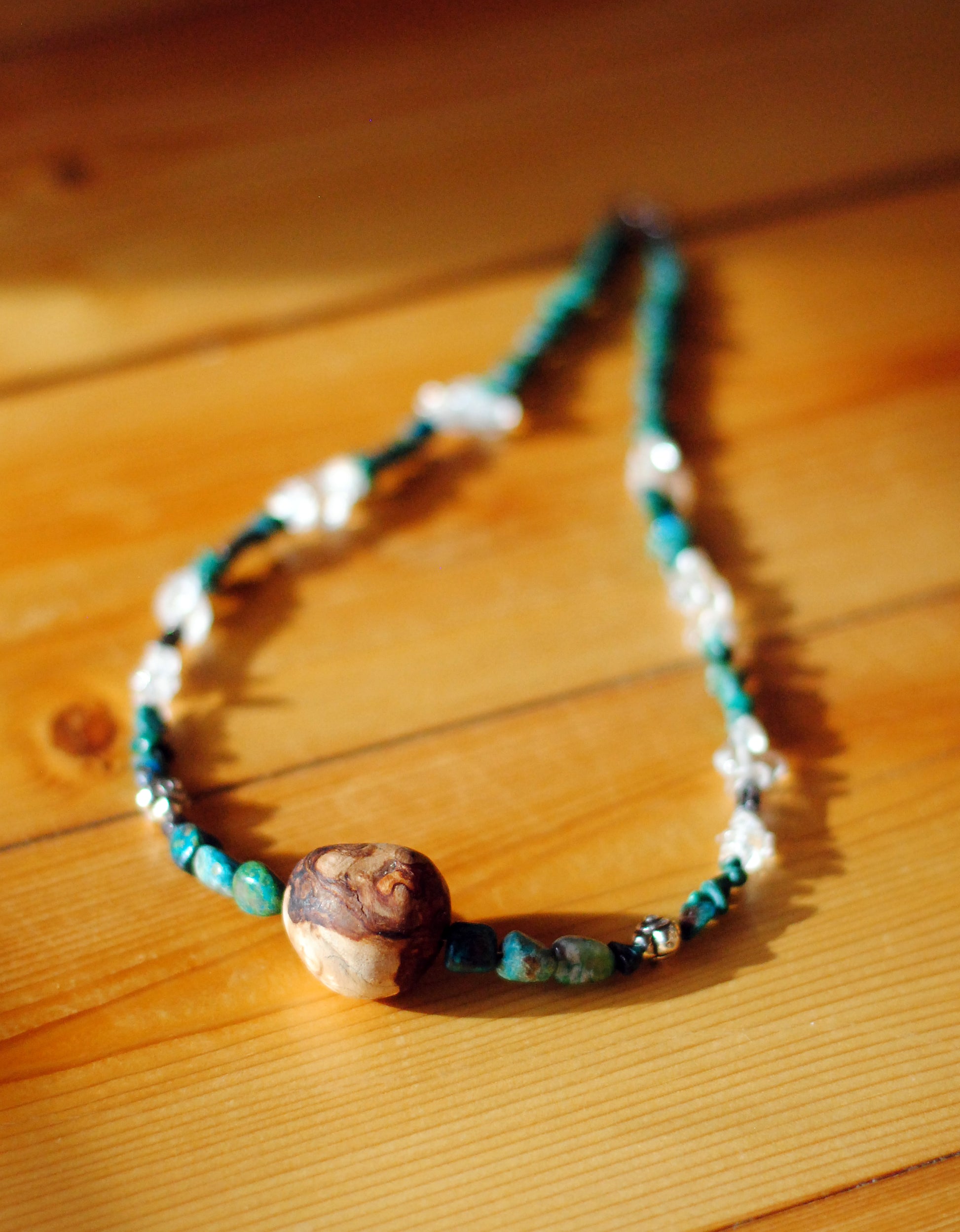 Einzelstück mit Baumperle und Edelsteinen, in liebevoller Kooperation entstanden von Felix von BaumperlenJuwel, Ramona von (R)Amiko Schamanische Medizinbeutel und mir, Anne von DonnaAnnaSchmuck.