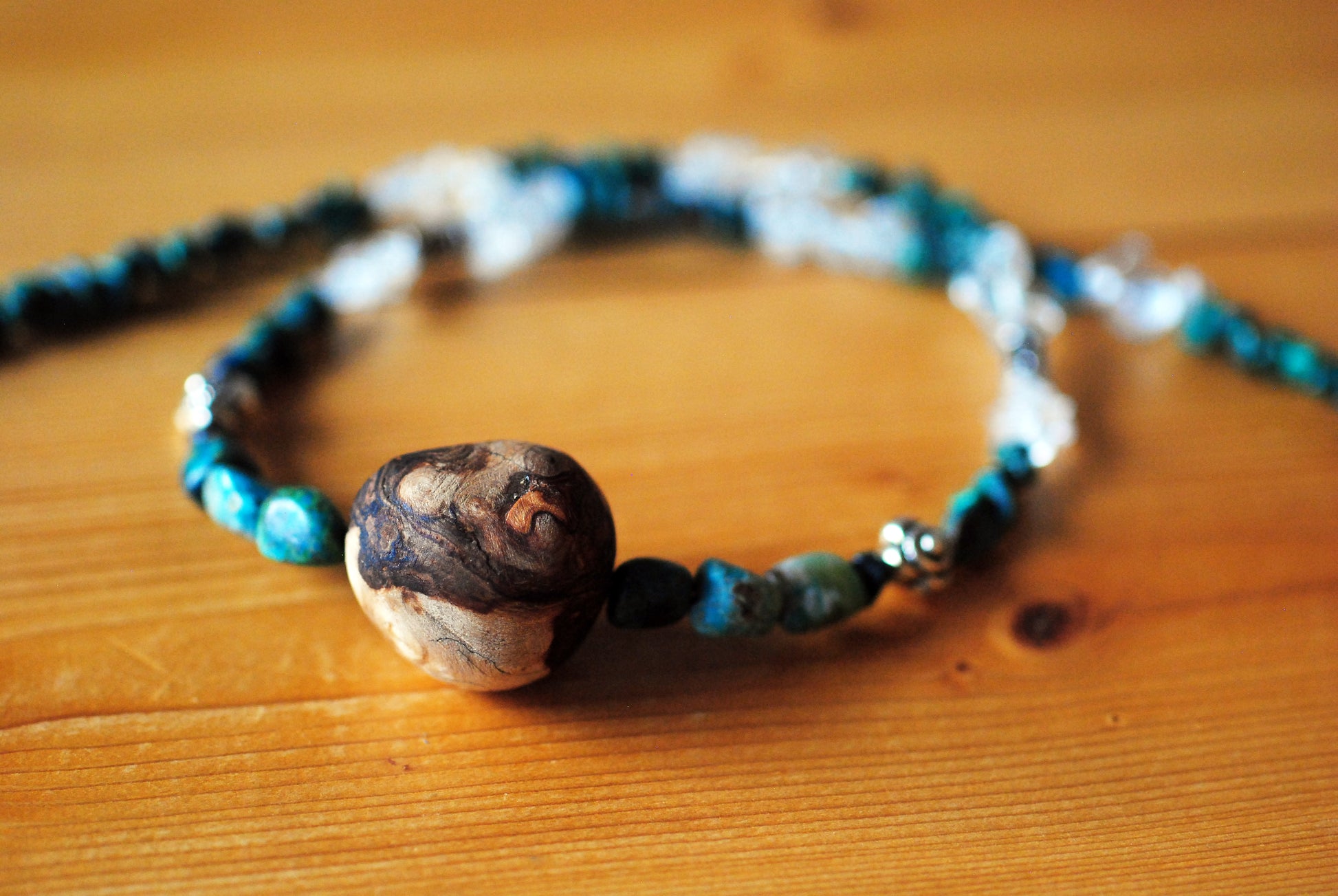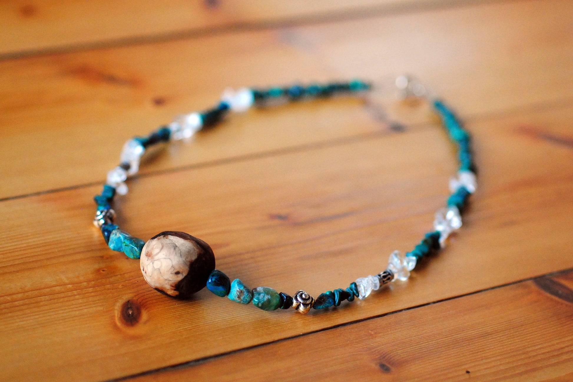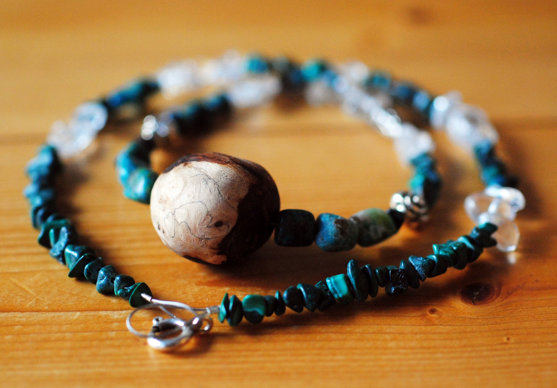 Zuversicht ✧ Baumperlen-Kette ✧ Chrysokoll & Malachit ✧ Unikat